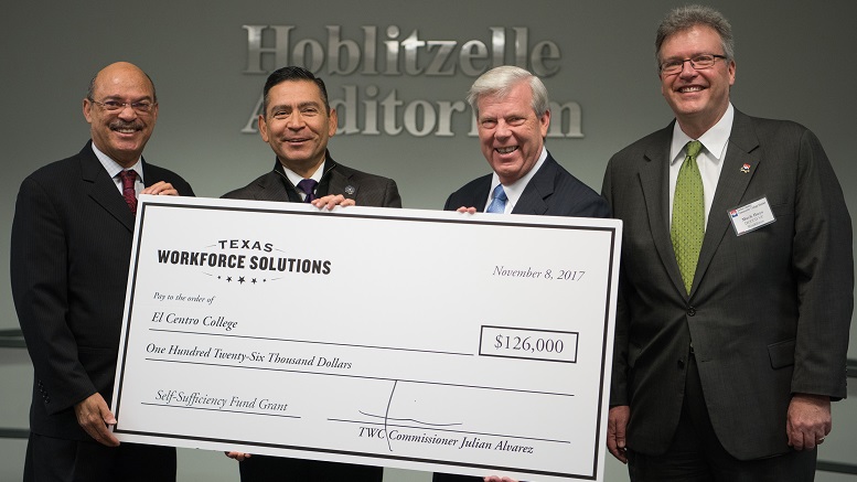 El Centro College will use a $126,000 Self-Sufficiency Fund grant to help 60 individuals transition into the workforce by providing them job training for occupations such as licensed insurance sales producers. The funding also will assist the college in developing the technical education and learning environment that will lead to industry-recognized certificates and credentials.