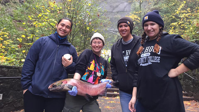 Students in the Mount Hood Community College fisheries technology program offer a sneak peak at the Salmon Festival at Multnomah Falls. (Photo: MHCC)