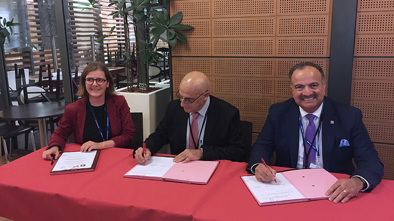 During a visit to Paris with other U.S. community college leaders to share promising practices, Francisco Rodriquez (right), chancellor of the Los Angeles Community College District, signs a memorandum of understanding with French officials. (Photo: LACCD)