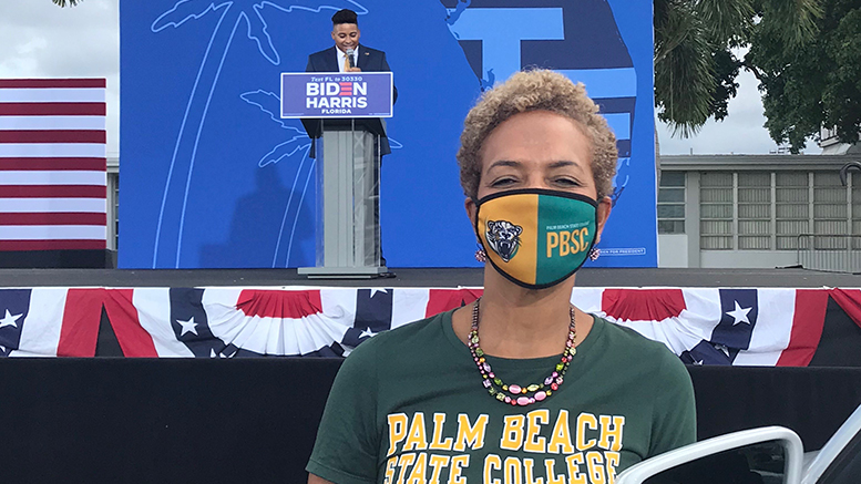 Ava Parker, president of Florida’s Palm Beach State College (PBSC) and a member of the AACC board of directors, poses with PBSC student Raphael Gutierrez, who warms up the stage October 31 for vice presidential hopeful Kamala Harris. (Photo: PBSC)Democratic vice president candidate Kamala Harris takes to the stage this past Saturday during a campaign stop in Florida held at Palm Beach State College. (Photo: PBSC)Students in Grossmont College’s dance program turned to tap dancing to get out the vote. Directed and choreographed by dance instructor Nancy Boskin-Mullen, “Tap the Vote” is a catchy video featuring former and current students, as well as members of a tap dance company, the California Rhythm Project. (Photo: Grossmont)A student at Southeast Community College in Nebraska uses free in-person tutoring available in a safe environment on campus. The Tutoring and Transition Center is open for face-to-face and online tutoring. (Photo: Southeast)Bucks County Community College in Pennsylvania is one of the only programs in the region able to continue nurse aide training amid the pandemic. Next month, the cohort of eight nursing students will start clinical rotations at a local retirement and assisted living facility. (Photo: BCCC)In California, MiraCosta College’s food pantry serves more than 1,200 students each month. Leah’s Pantry, a San Francisco-based organization promoting innovative nutrition programs to foster a more equitable and inclusive food system, recently recognized the college for its work in this area with its gold-level certification. (Photo: MiraCosta)The federal co-chair of the Delta Regional Authority, Chris Caldwell (center left), recently took a first-hand look at two of Hinds Community College’s partnerships with industry during a tour of the KLLM Driving Academy and Diesel Technology Academy. Representatives of Sens. Roger Wicker and Cindy Hyde-Smith also participated, as did Hinds President Stephen Vacik (second from left) and other local business and industry leaders. (Photo: Hinds)