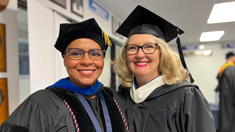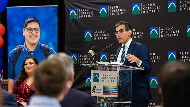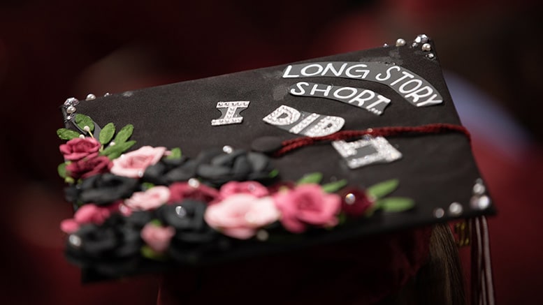 Piedmont Virginia Community College built a cozy course cabin to assist students with enrolling and registering for the upcoming spring semester. The “cabin” is complete with scenic views of snow-capped mountains, a fireplace and a hot cocoa station. (Photos: PVCC)Mike Flores, chancellor of the Alamo Colleges District, announces the expansion of the Texas college’s tuition-free AlamoPROMISE program, which launched in 2019. AlamoPROMISE will serve 20 school districts and partners and 73 San Antonio-area high schools and programs. (Photo: Alamo Colleges)A graduating student’s decorated cap at the fall commencement at HACC, Central Pennsylvania’s Community College. (Photo: HACC)Ty Stone (left), president of Cleveland State Community College, and Tennessee Board of Regents member Danni Varlan, prepare for the college’s fall commencement ceremony. (Photo: CSCC)Students in Houston Community College Central’s digital arts class showcase their wearable 3D shoes for their final grade. (Photo: Houston Community College)Each fall, Hagerstown Community College’s Internship and Job Services Office holds a clothing drive to collect professional clothing and accessories that are made available, free of charge, to students who are preparing for internships and employment opportunities. (Photo: HCC)