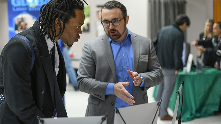 Marco Torelli attended to represent Adamas Nanotechnologies, a Raleigh company that makes sensors from diamonds. The company is interested in skill sets the laser and photonics students possess, such as knowledge of optics and electronics.