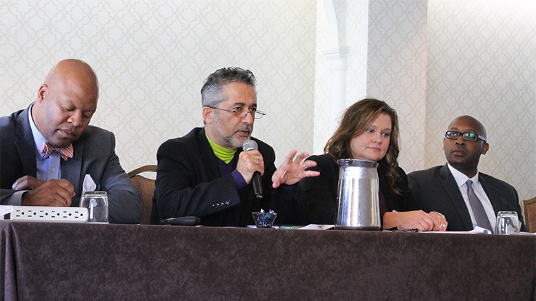 Rassoul Dastmozd (speaking), president of St. Paul College, discusses efforts to inspire K-12 students to continue studying STEM programs in college during the Equity and Inclusion STEM Thought Leaders’ Summit this week. He is joined by