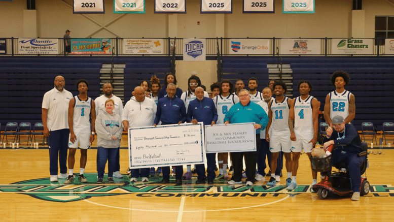 The Brunswick Community College (BCC) men’s basketball program celebrated a milestone night recently. Not only did the team on the court, but longtime supporters Joe and Moe Stanley announced the success of a new $80,000 fundraising effort.